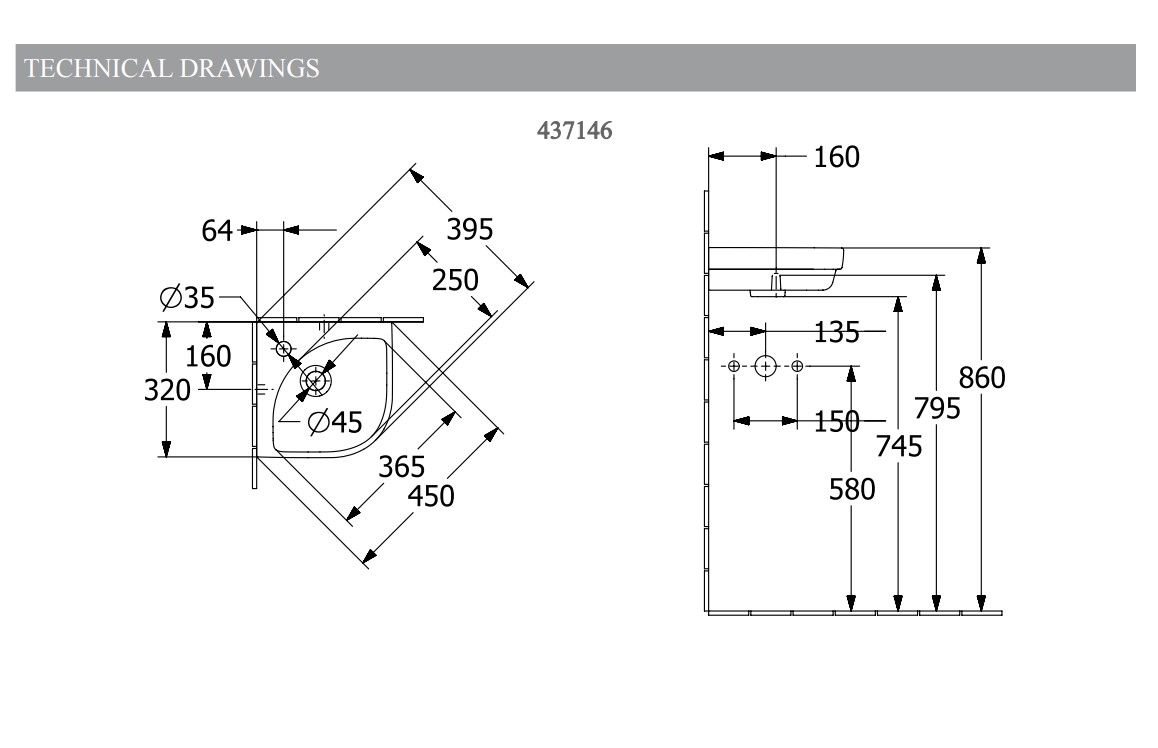SUBWAY 3.0 Умивальник кутовий 320 мм (43714601)