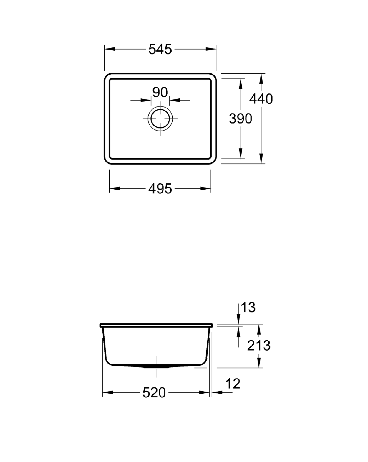 SUBWAY 60 SU Кухонна мийка 54,5x44 см, монтаж під стільницю (331001R1) White Alpine CeramicPlus