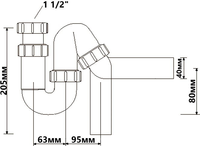 Сифон для кухонної мийки 1 1/2х40 без зливу HC-6