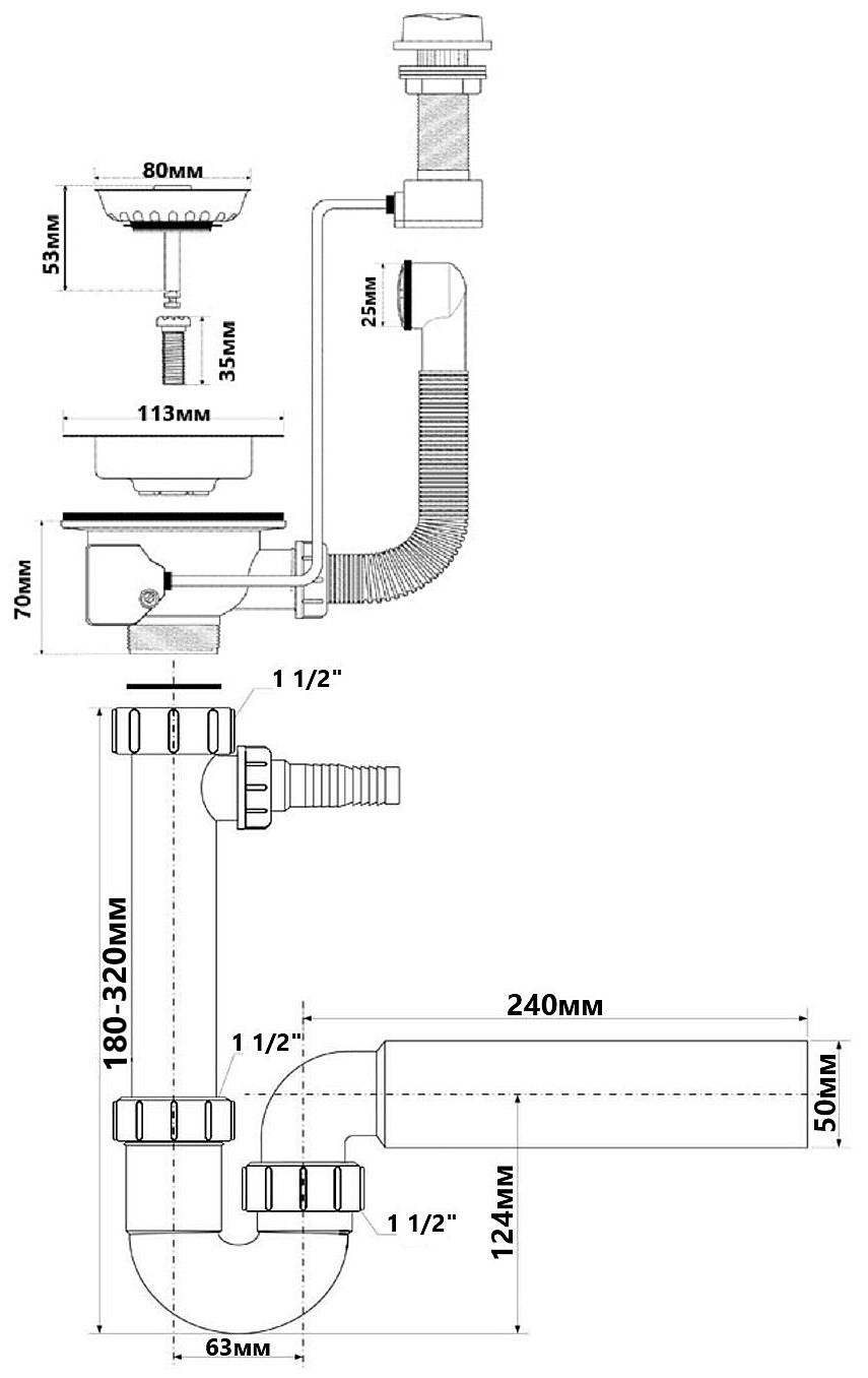 Відгуки про "Сифон для кухонної мийки з переливом HC7+PUFS113-CP-25"