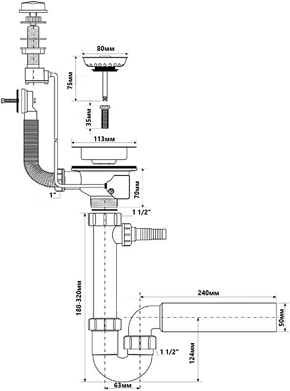 Відгуки про "Сифон для кухонної мийки з переливом HC7+PUFS113R-CP"