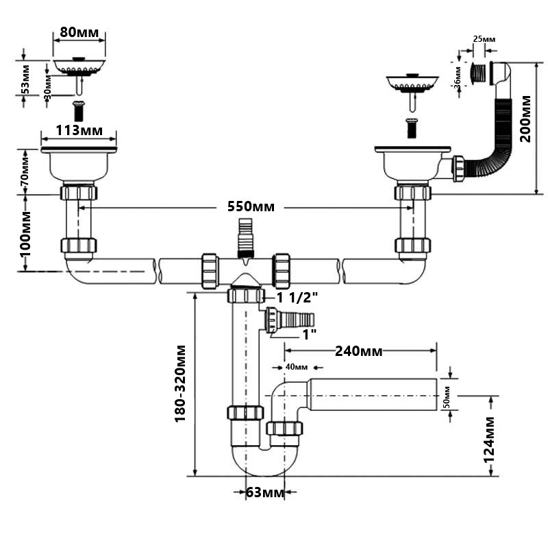 Сифон для кухонної мийки
