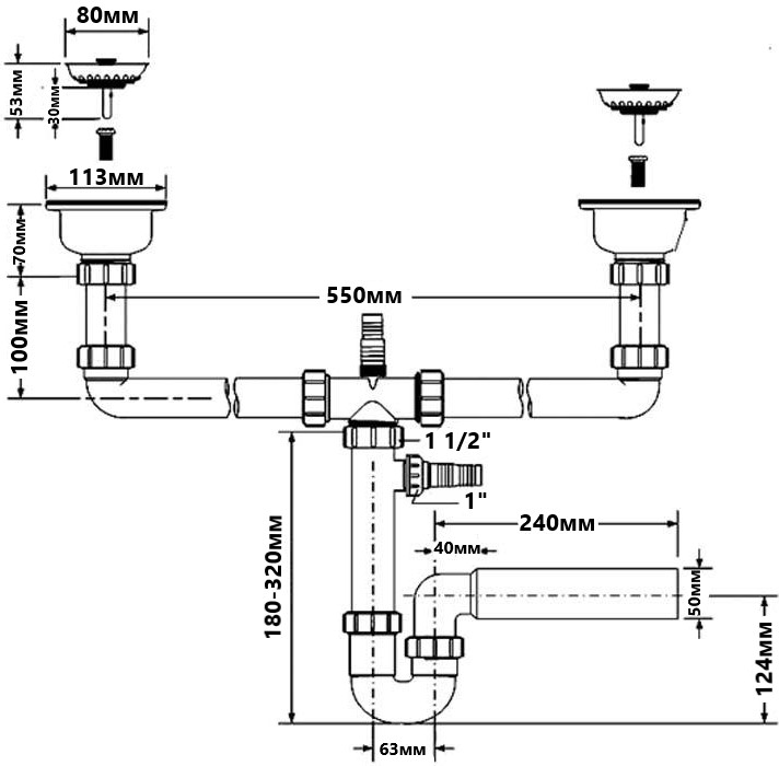 Відгуки про "Сифон для кухонної мийки з підключенням до пральної машини зі зливом HC7HC12-POL"