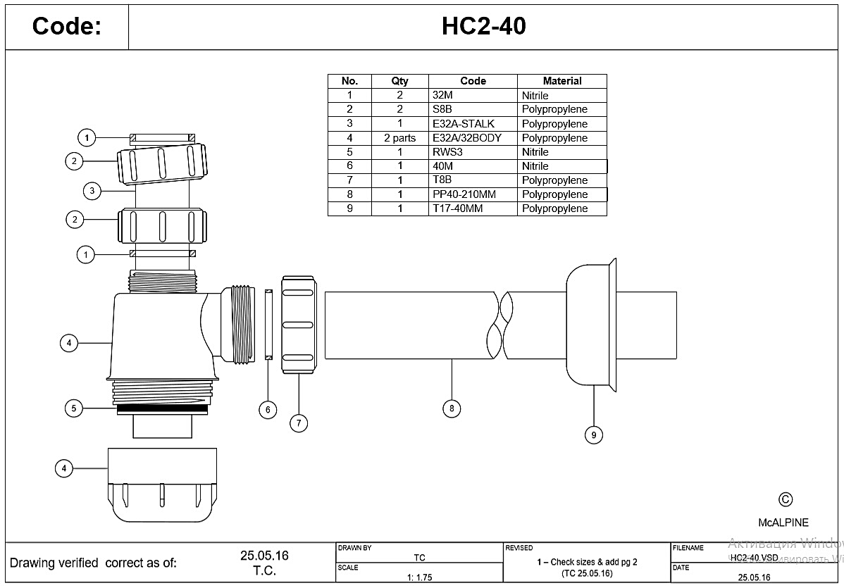 Відгуки про "Сифон для умивальника 1/4х40 HC2-40"