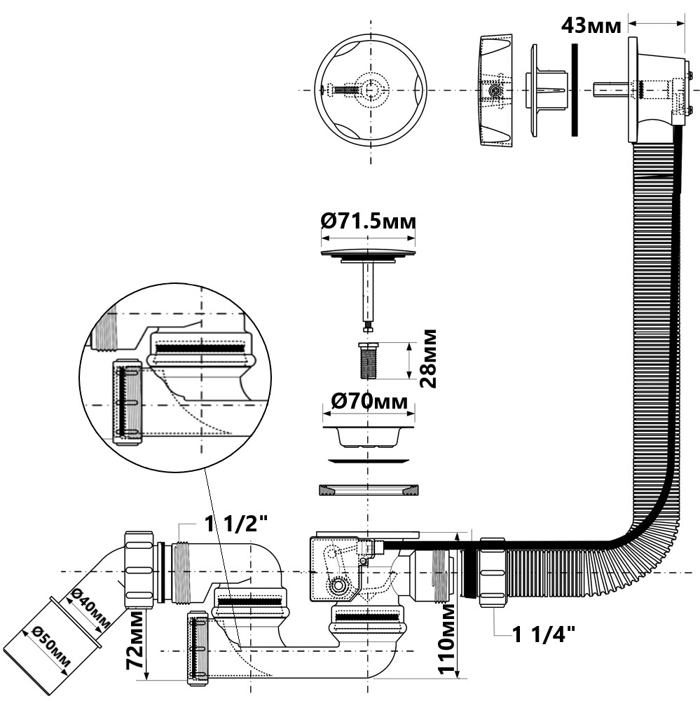 Сифон для ванни автомат HC31M-N1