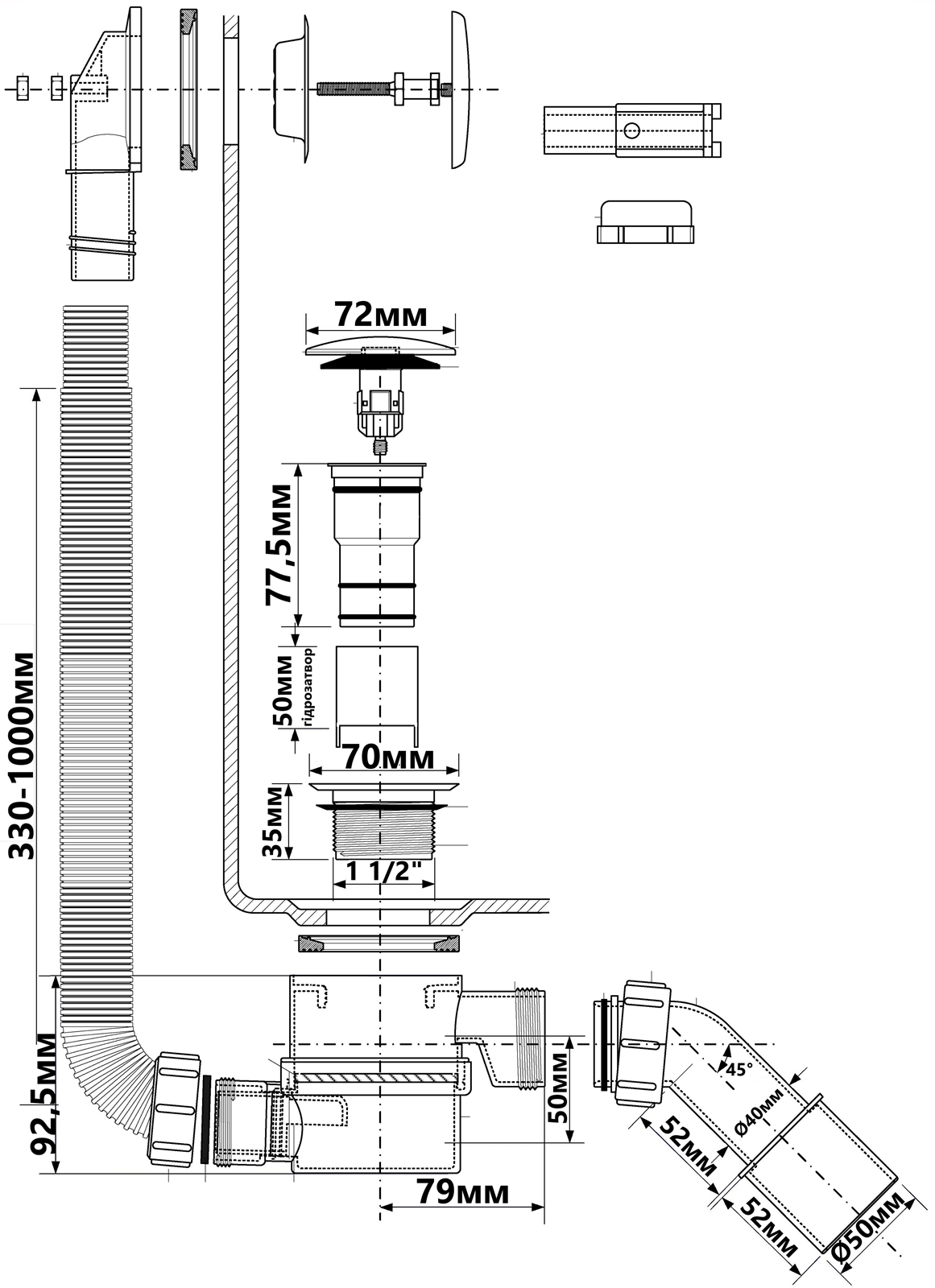 Відгуки про "Сифон для ванни/піддону "клік-клак" з отвором 40/50 HC2600CLSC сатин"