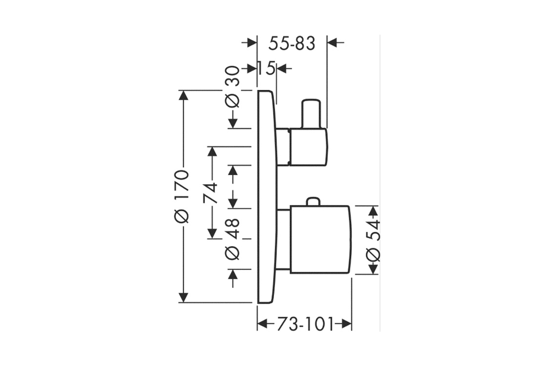 2 функції;картридж термостата, запірна арматура;максимальна витрата при 3 барах: 29 л/хв;витрата верхній вихід: 25 л/хв;витрата нижній вихід: 29 л/хв;мін. робочий тиск: 1 бар;макс. робочий тиск: 10 бар;безпечна зупинка при 40 °C;регулюється обмеження температури;зворотний клапан;зворотний клапан;необхідне додаткове обладнання: прихована частина для змішувачів Ibox universal (арт.01700180) (не входить в комплект).