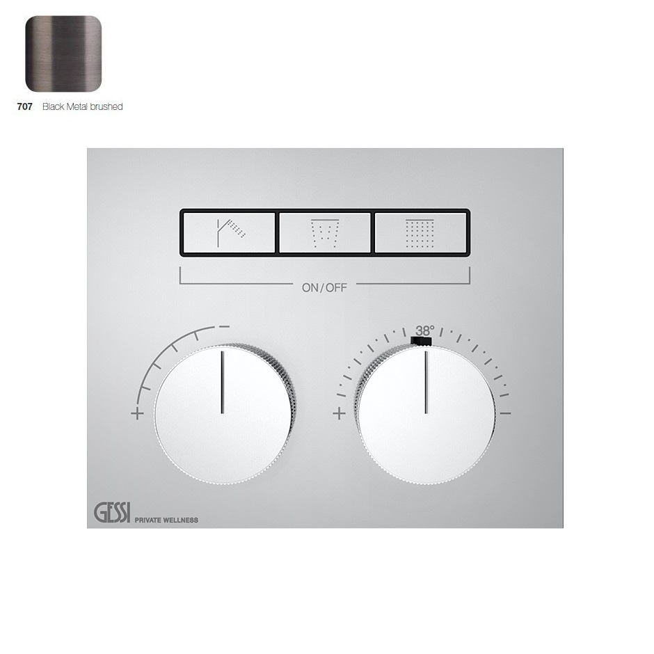 Термостат для душу Gessi Hi-Fi на 3 споживача (зовнішня частина), Black Metal Brushed PVD (63006-707)