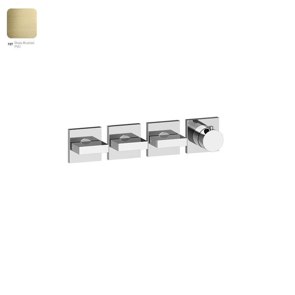 Термостат для душу Gessi Rettangolo, 3 незалежні виходи, зовнішня частина, Bruched Brass PVD (44336727)