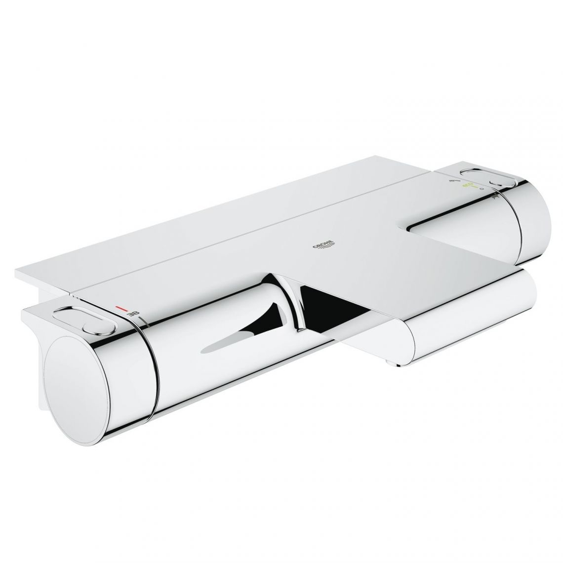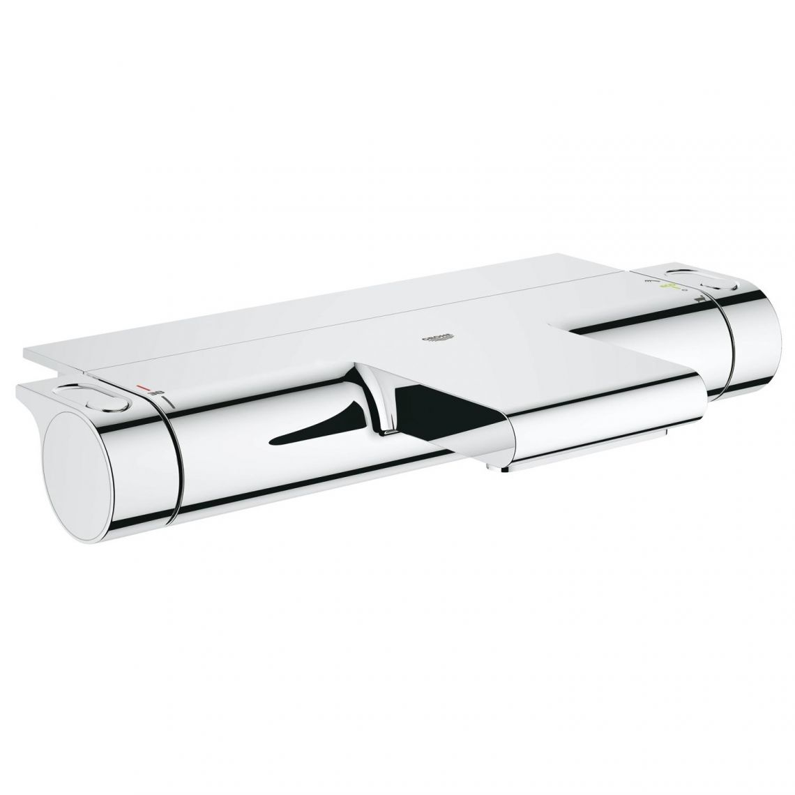 Цей витончений змішувач для ванни дозволить Вам швидко наповнити ванну за допомогою неймовірно безшумного потоку води бажаної температури, який занурить Вас в заспокійливу атмосферу в стилі спа. Потужний термостат комплектується витонченої поличкою EasyReach для зберігання банного приладдя під рукою, а технологія GROHE CoolTouch робить його безпечним для дотиків, не дозволяючи зовнішньої поверхні нагріватися. Перемикач GROHE AquaDimmer дозволяє з легкістю перенаправляти потік води між каскадним виливом для ванни і душем. Обмежувач SafeStop оберігає користувачів - особливо дітей - від випадкового включення занадто гарячої води під час купання. Завдяки нецарапающімся і легко очищається хромованому покриттю це вишукане пристрій збереже свій сліпучий зовнішній вигляд на багато років. Вбудований механізм водозбереження дозволить Вам скоротити витрату води через душ практично вдвічі, допомагаючи спокійно насолоджуватися купанням з свідомістю того, що Ви економите цінні природні ресурси.