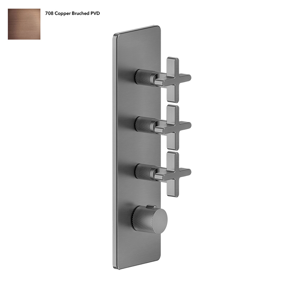 Термостат Gessi Inciso, 3 незалежні виходи, зовнішня частина, Copper Bruched PVD (58226708) - особливі естетичні та технологічні особливості продукту створюють нові та незвичайні цінності у повсякденному житті.