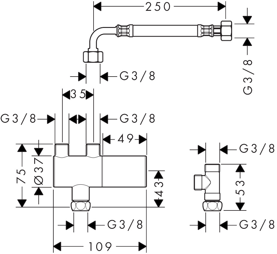 обмеження температури регулюється.термостат пропонує можливість термічної дезінфекції.зворотний клапан.розмір підключення: G ⅜.мінімальний робочий тиск: 1 бар.макс. робочий тиск: 5 бар.