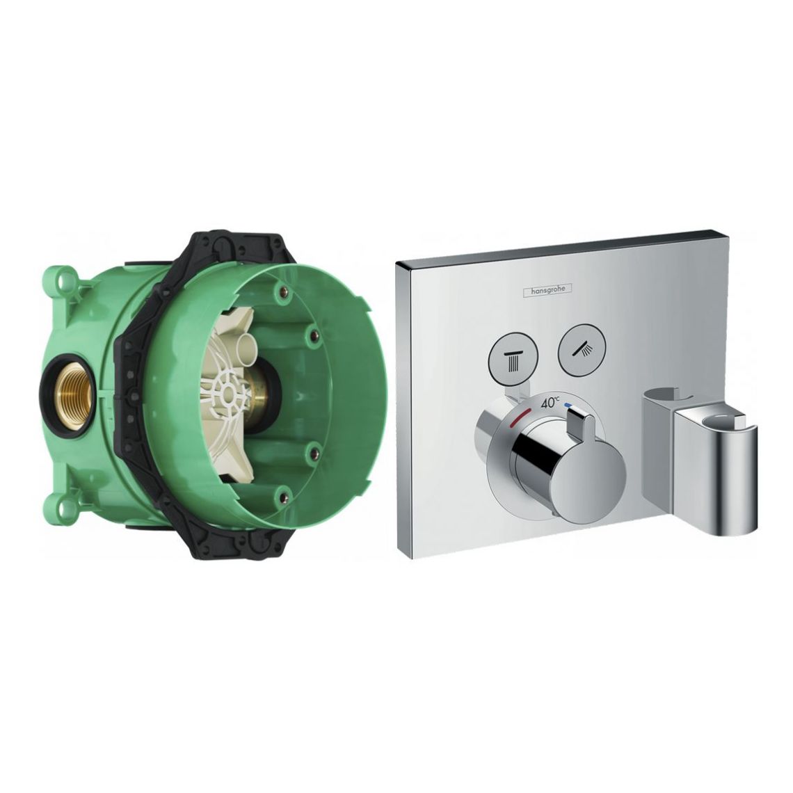 Термостат з утримувачем для душу Hansgrohe ShowerSelect на 2 функції, з інсталяційних блоком (15765000 + 01800180)