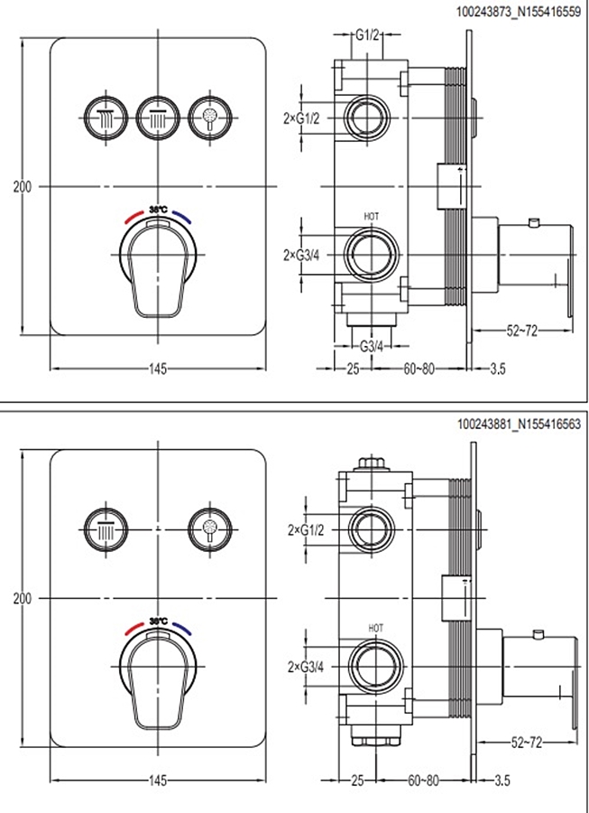 Відгуки про "TOUCH&FEEL Змішувач з термостатом для ванни/душу прихованого монтажу на 3 виходи, комплект (100243873)"