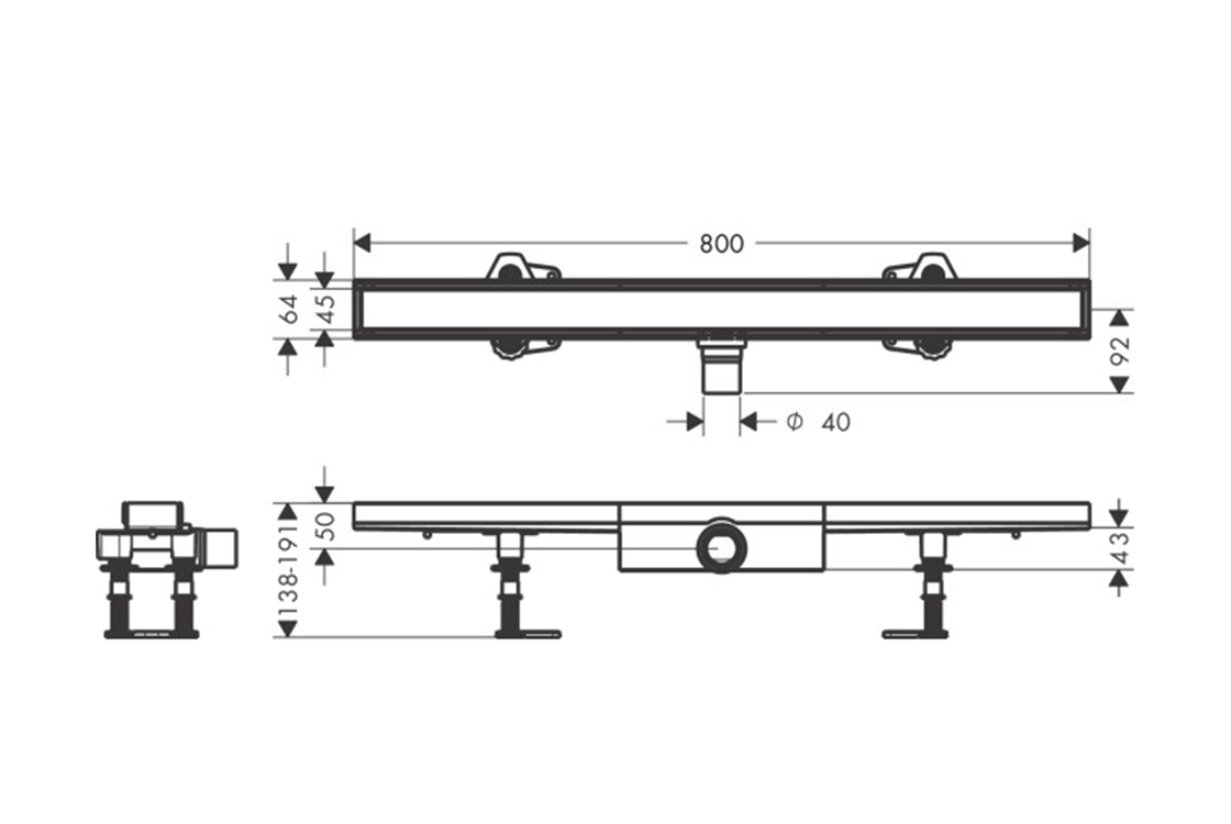 складається з: плиткової решітки, монтажного набору, сифона, інструменту для зняття решітки, попередньо змонтованої ущільнювальної мембрани,довжина 80 см,гідрозатвор: 30 мм,діаметр підключення: DN40,напрямок випуску: горизонтальний,регульований по висоті монтажний комплект,пропускна здатність до 27 л/хв,підходить для будь-якого типу плитки з товщиною до 18 мм,знімний водяний замок,сифон легко миється,інструмент для видалення решітки дозволяє легко зняти фінішний набір,тип ущільнення запаху: рідина,мінімальна монтажна висота 43 мм,висота базового набору: 30 мм,матеріал сифона: ABS,тип монтажу: вільно в підлогу,глибина інкрустації плиткою: 12 мм,підходить для первинного дренажу,