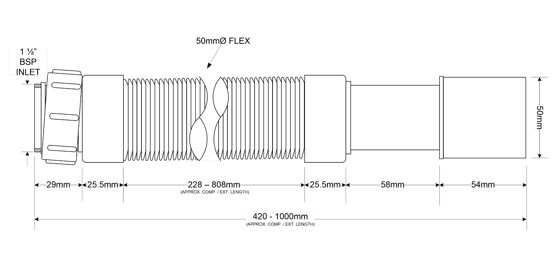 Труба розтяжна до кухонної мийки 11/2х40/50 довжина - 1 м. FLX-HC27