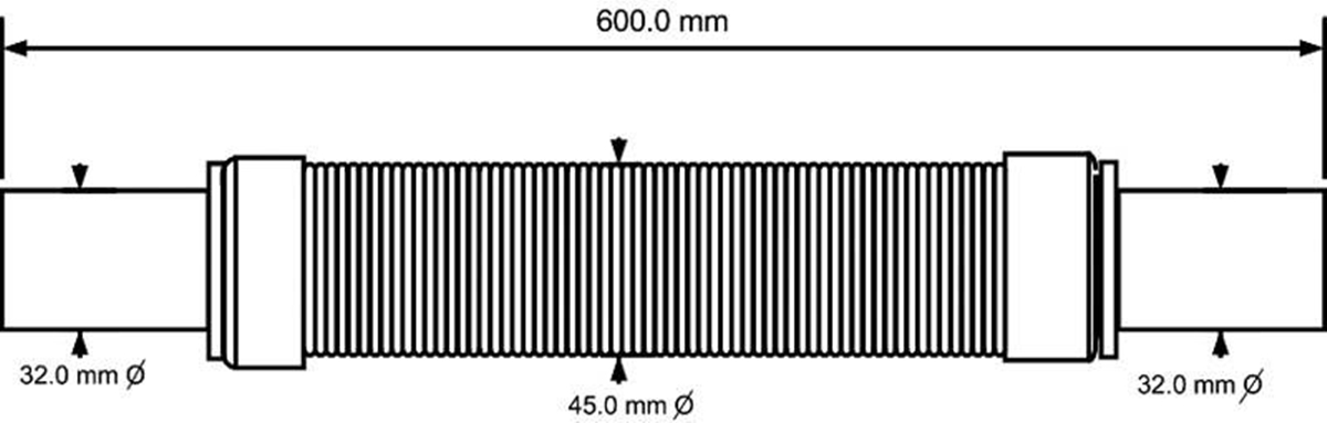 Гнучка з'єднувальна труба "McALPINE FLEXRP32 ZE1" має довжину 500 мм., вона може скорочуватися до потрібної довжини.