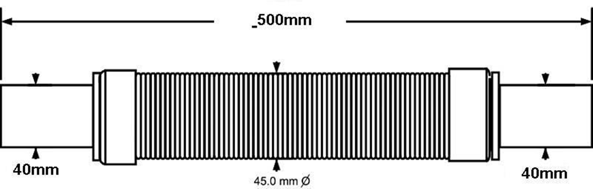 Гнучка з'єднувальна труба "McALPINE FLEXRP40 ZE2" має довжину 500 мм., вона може скорочуватися до потрібної довжини.