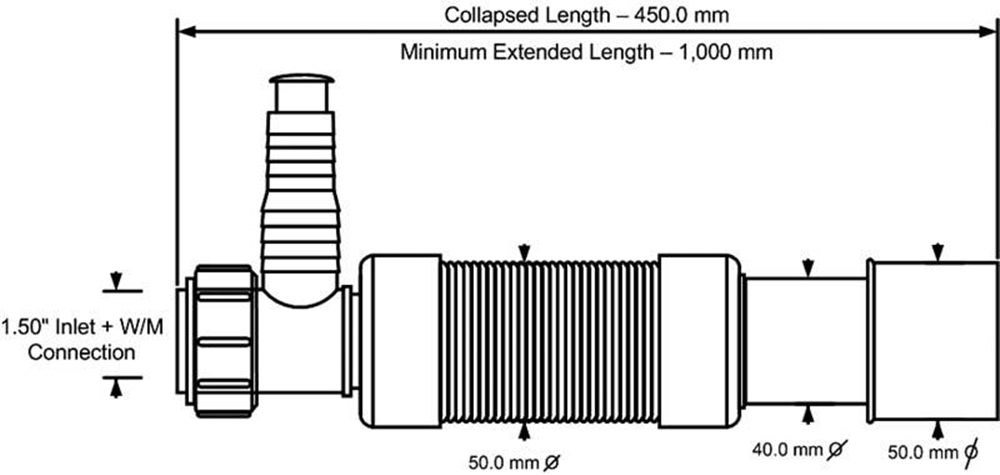 Труба розтяжна з підключенням до пральної машини 11/2х40/50 1 м. MRMF2W