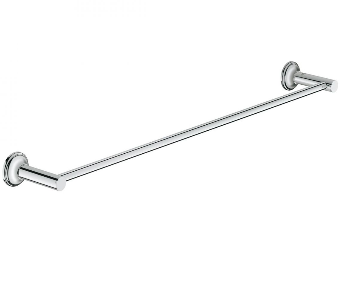 Тримач для рушника Grohe Essentials Authentic (40653001) може вмістити рушники шириною 600 мм. Його класичний дизайн одночасно функціональний і привабливий, а хромове покриття забезпечує елегантне сяйво його поверхні. Тримач відмінно підійде до всієї лінійки аксесуарів Essentials Authentic.