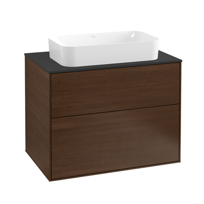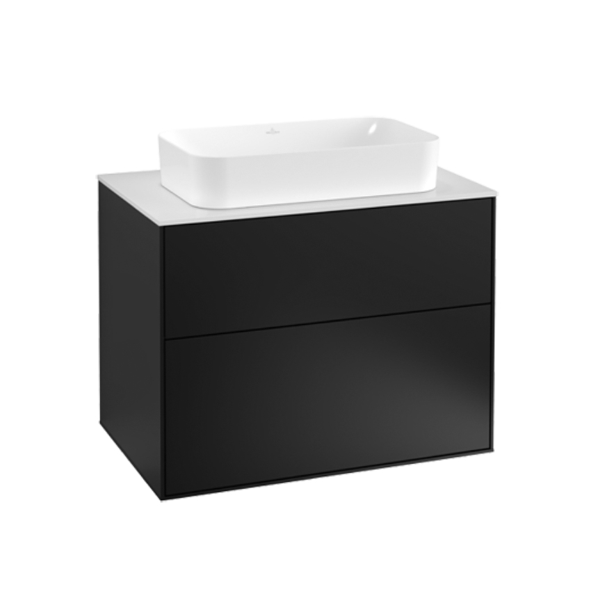 Тумба під раковину Villeroy & Boch Finion (F22100PD) з 2 висувними відділеннями з протиковзким килимком. Є отвір для змішувача. Раковина встановлюється по центру.