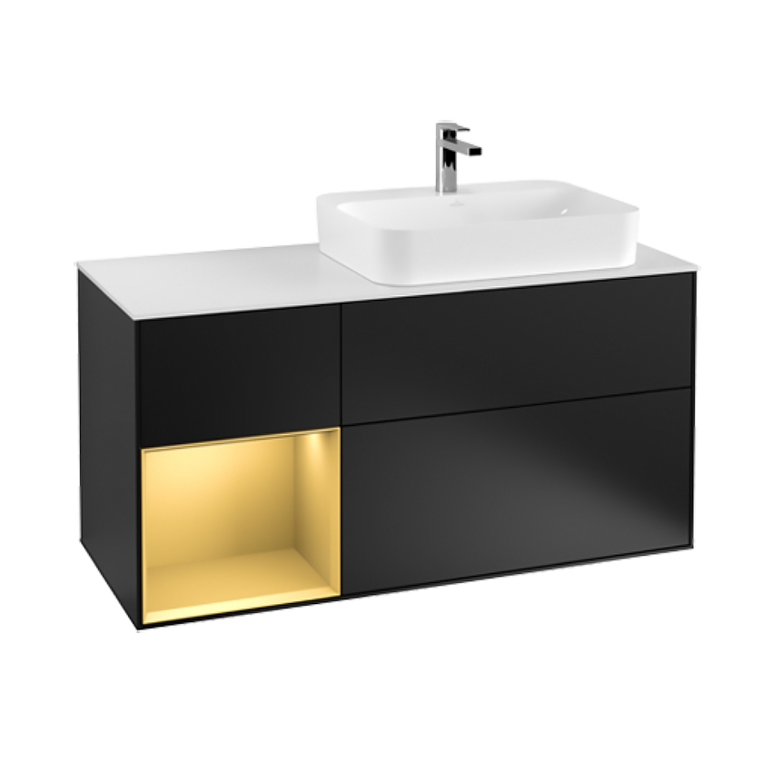 Тумба під раковину Villeroy & Boch Finion (G391HFPD) з 3 висувними відділеннями з протиковзким килимком і з LED-підсвіткою (1x LED / 2,3Вт. 2x LED / 4,2Вт. A-A ++. 2700K нейтральний білий / 6480K білий денне світло) .