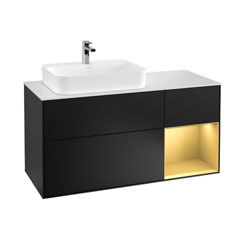 Тумба під раковину Villeroy & Boch Finion (G401HFPD) з 3 висувними відділеннями з протиковзким килимком і з LED-підсвіткою (1x LED / 2,3Вт. 2x LED / 4,2Вт. A-A ++. 2700K нейтральний білий / 6480K білий денне світло) .