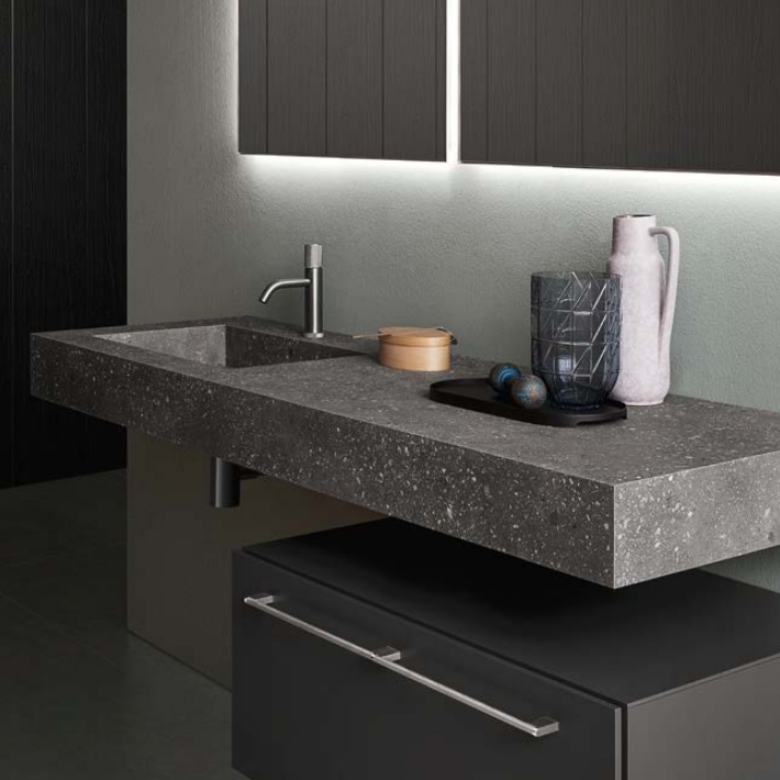 Тумба з умивальником Arbi Teso 08 158х50.5 см, hpl Dioniso Scuro/Grigio Rabbit opaco (Teso 08) - велика модульність та численні варіанти оздоблення для сучасної та модної ванної кімнати.