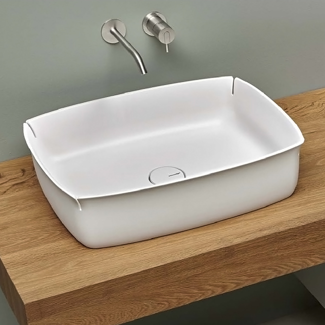 Умивальник на стільницю Antonio Lupi (BLOOM) - модель прямокутної форми з надрізаними краями.
