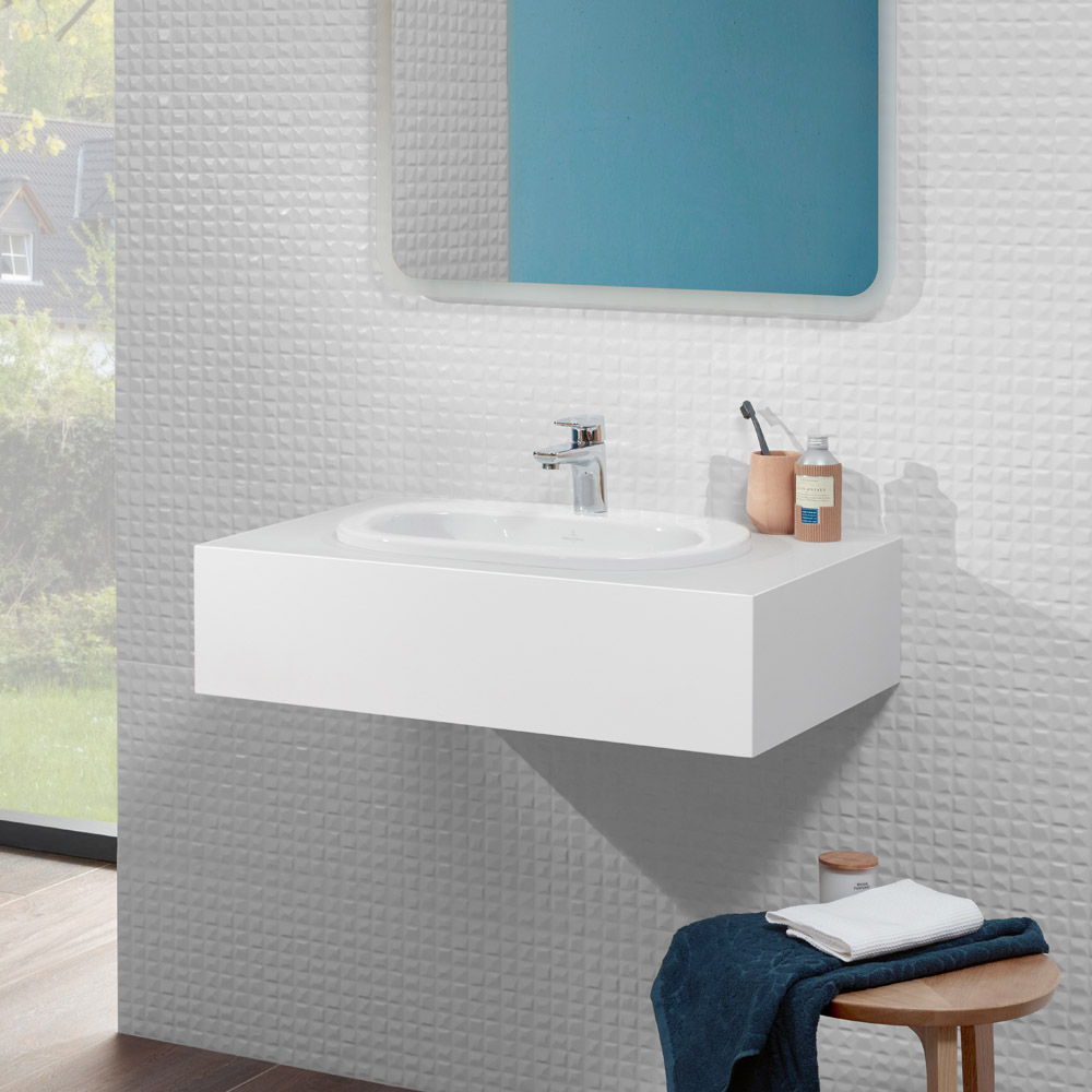 Раковина Villeroy & Boch O.novo 41615701 має одне Вирізні отвір під змішувач (підходить для 3-позиційного змішувача), без переливу. Вбудований монтаж.