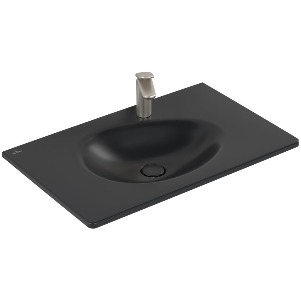 Умивальник накладний Villeroy&Boch Antao 80х50см, з прихованим переливом, з отвором під змішувач, Ceramic Plus, Pure Black (4A7584R7)