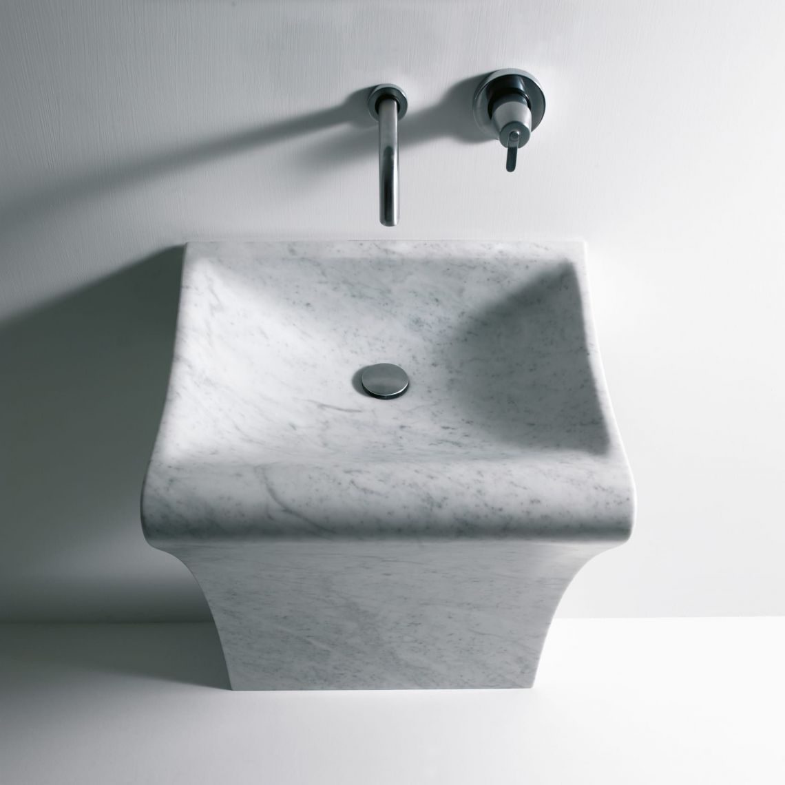 - прямокутний умивальник з білого каррарського мармуру з опорою на підлогу
