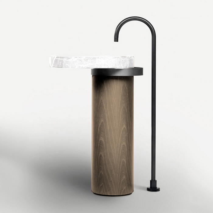 Умивальник окремо стоячий Falper Eccentrico 63x56x90 см Carrara, світлий дуб (WN7 MC TI RP) - енергія, втілена в формах і пропорціях.