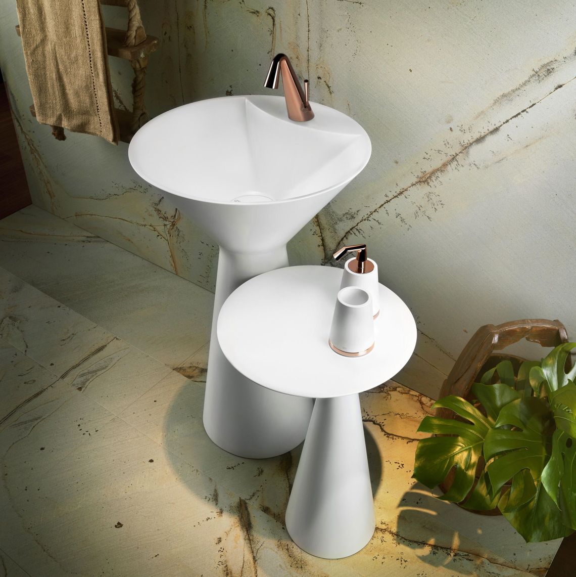 Умивальник окремостоящий Gessi Cono, без переливу, злив у стіну, отвір під змішувач, Cristalplant Matt White (45907521) - особливі естетичні та технологічні особливості продукту створюють нові та незвичайні цінності у повсякденному житті.