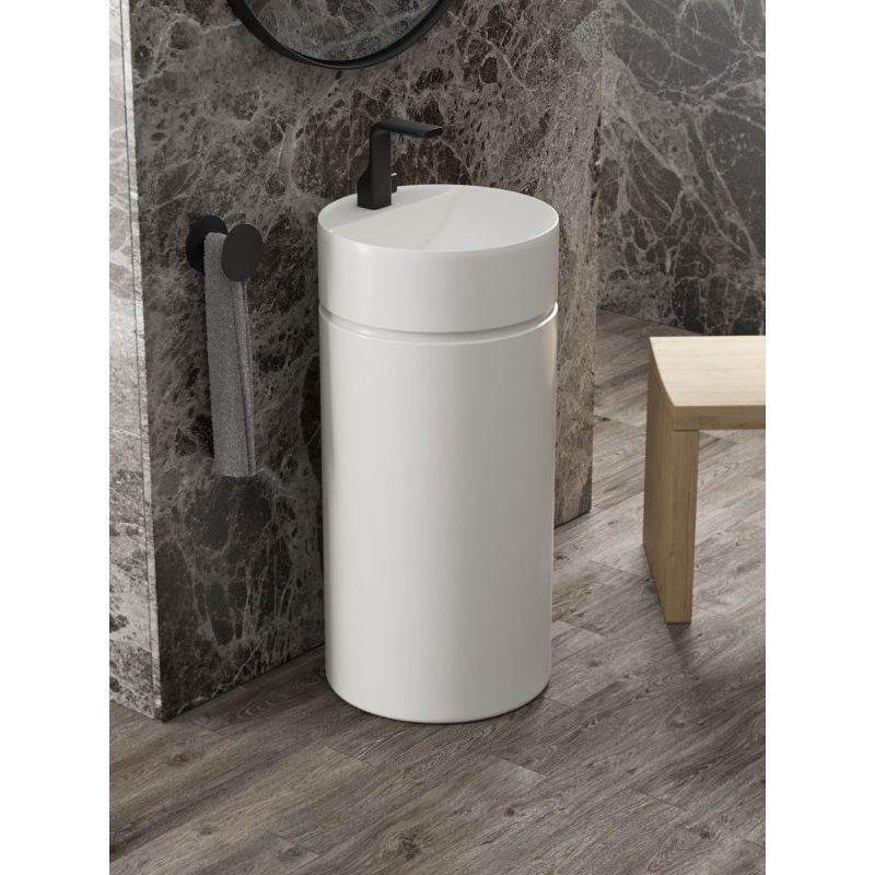 Умивальник окремостоящий Flaminia Twin пристінний, без переливу, з отвором під змішувач, 42 х 42 х 88 см, білий глянсовий (MTR42P)