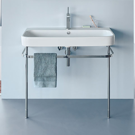 Умивальник підвісний Duravit Happy D.2 120x50 (2318120000) доступний в комплекті з меблями з відповідним підставою, або чи з металевою консоллю у вигляді накладної раковини або у вигляді класичної раковини з п'єдесталом і напівп'єдесталом.