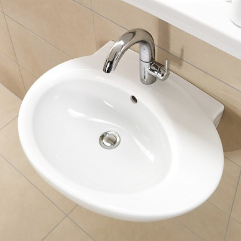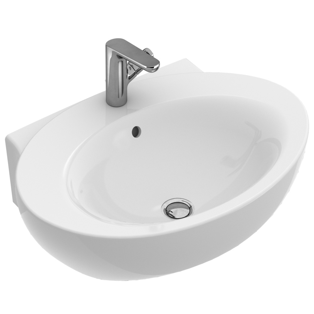 Раковина Villeroy & Boch Aveo New Generation 413070R1 має одне вирізаний отвір під змішувач і перелив, включаючи подовжений стрижень для механізму зливу "pop-up".