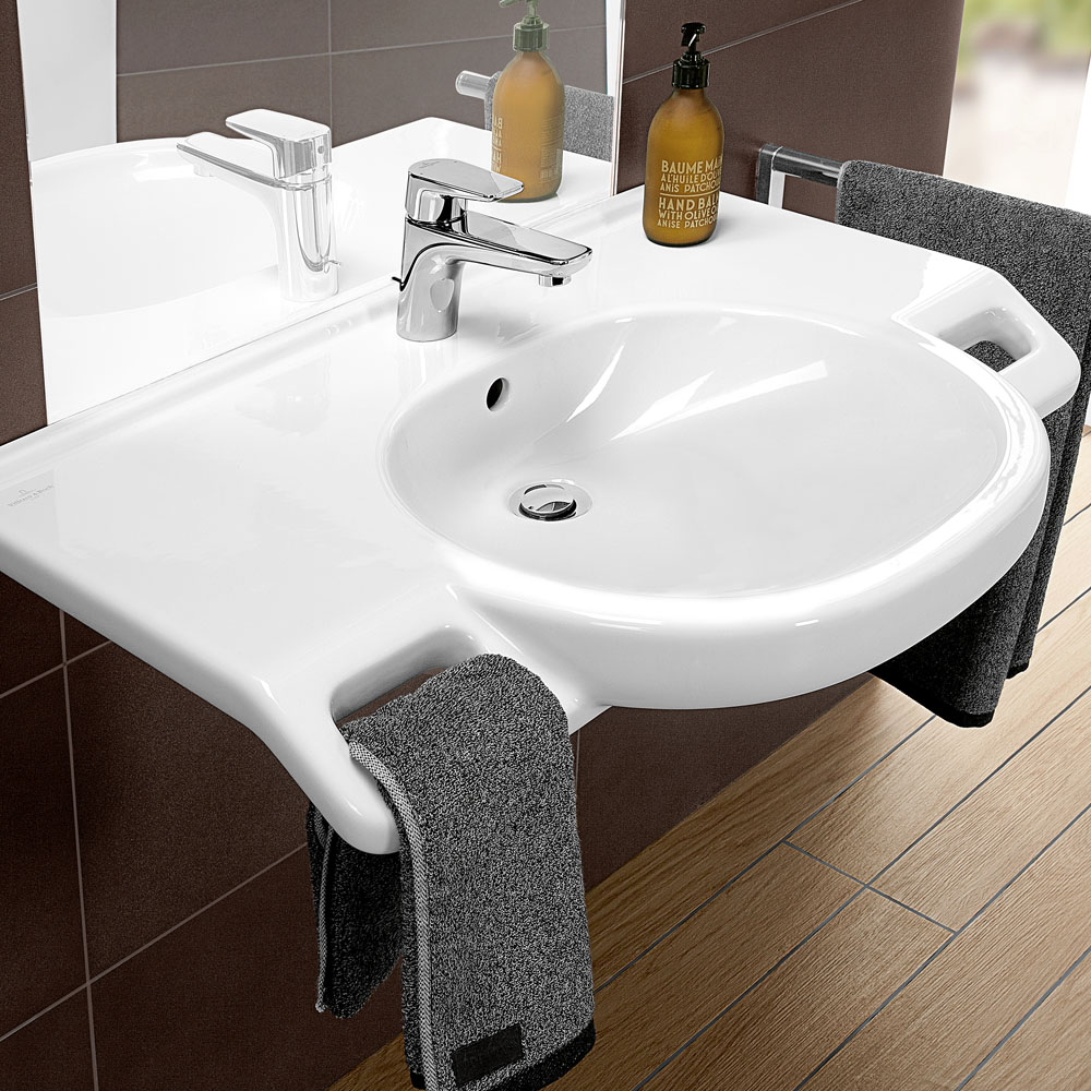 Раковина Villeroy & Boch O.Novo Vita 41208001 має одне Вирізні отвір під змішувач (підходить для 3-позиційного змішувача), є перелив. Настінний монтаж.