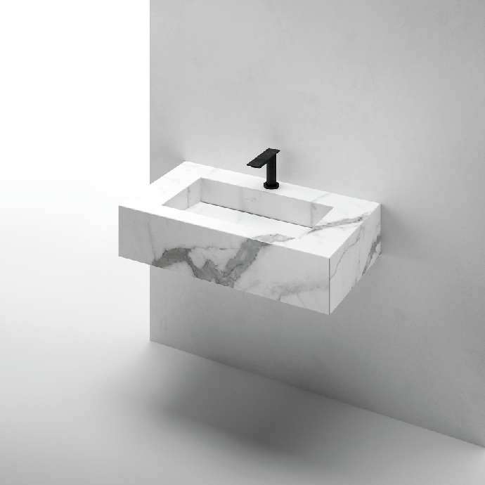 Умивальник підвісний з керамограніта WaterStone 70х50 (WS10700) без переливу довжиною 70 см. Виробляється під замовлення з керамогранитной плити Graniti Fiandre, Atlas Concorde або Florim в обраному кольорі. Може комплектуватися додатковою вставкою (подвійним дном) з керамограніта, яка закриває донний клапан, створює ухил і щілинний слив. При необхідності вирізаються отвори під змішувач в потрібній кількості.