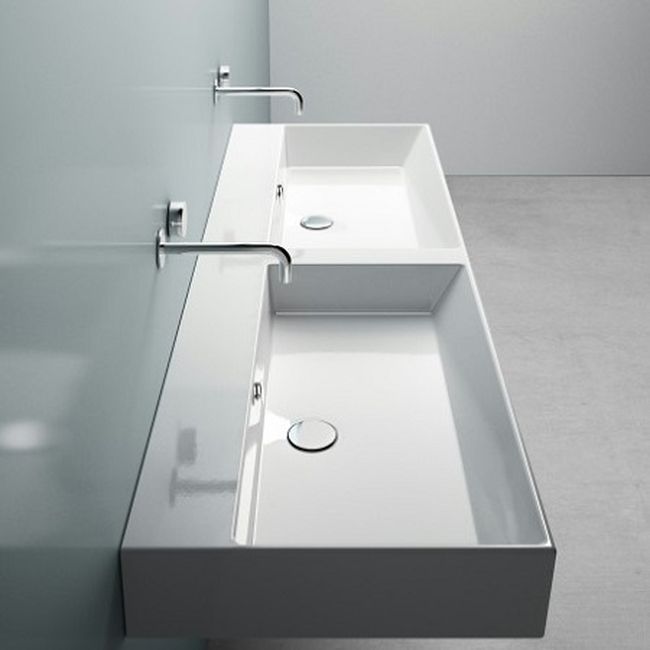 Умивальник подвійний Catalano Premium без отворів під змішувач, із наборами кріплень, 120х47 см, білий (112VPD00_Z3443_Z3443) – буде елегантним доповненням до інтер'єру Вашої інтимної кімнати.
