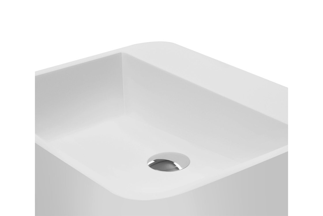 Умивальник Assos виготовлений за технологією Mineral DuraBe - мінеральне лиття, яке є сумішшю натуральних каменів (таких як мармур або граніт) і смоли, характеризуються ідеально гладкою, непористою поверхнею з дуже високою міцністю та стійкістю до зміни кольору.Доступний у будь-якому кольорі RAL за додаткову плату, а також в обробці Besco Glam у таких кольорах: золото, срібло або графіт. Матове оздоблення умивальника покриває зовнішню частину моделі; глянцевий всередині.Можливість кріплення змішувача для умивальника на полиці. Діаметр отвору під змішувач 35 мм.