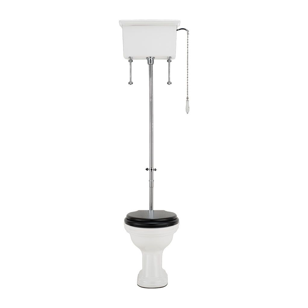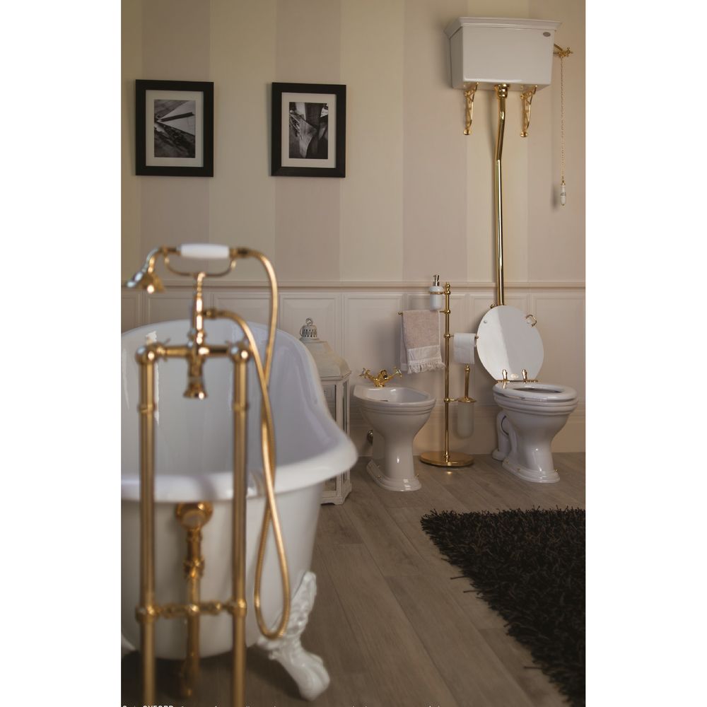 Унітаз підлоговий Gaia Oxford з високим бачком і зливним механізмом, патрубком, ланцюжком, декоративними скобами, білий (PHOX01 / PHOX12 / PPAC24CR)