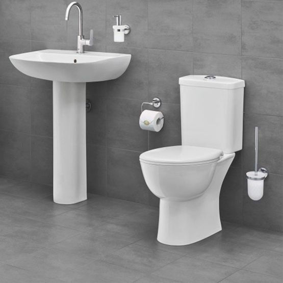 Унітаз підлоговий Grohe Bau Ceramic з бачком і кришкою (39347000) порадує своєю простою, елегантною естетикою і привабливою ціною як тих, хто планує капітальний ремонт, так і тих, хто вирішив позбутися від обридлого старого унітазу. Відсутність традиційного обідка у верхній частині чаші унітазу в поєднанні з гладким сантехнічним порцеляною і ефективним змивом спрощують підтримку унітазу в чистоті, не залишаючи бактеріям шансу. Все необхідне для кріплення зливного бачка і сидіння до унітазу входить в комплект. Сидіння обладнане функцією швидкого зняття для зручного очищення і мікроліфтом для плавного закривання.