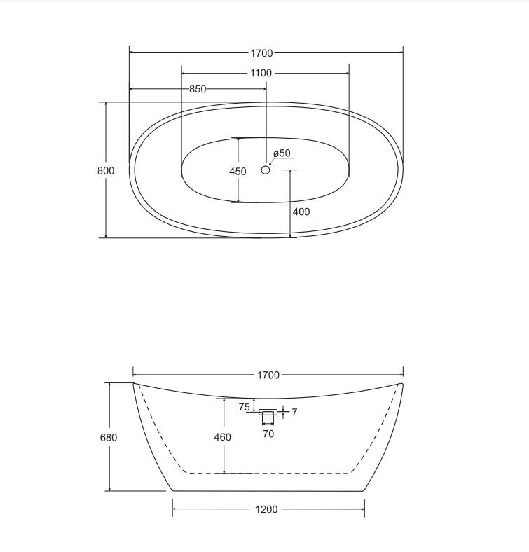 Відгуки про "Ванна акрилова AYLA ретро 170х80 з сифоном клік-клак чорний"