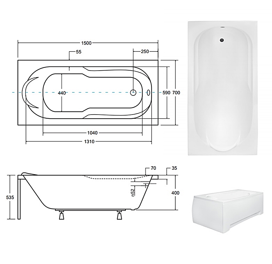 Відгуки про "Ванна акрилова BONA 150х70 соло / без ніг"