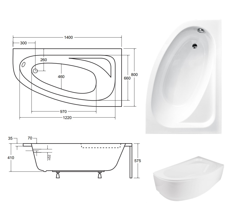 Відгуки про "Ванна акрилова CORNEA 140х80 Права (соло) без ніг"