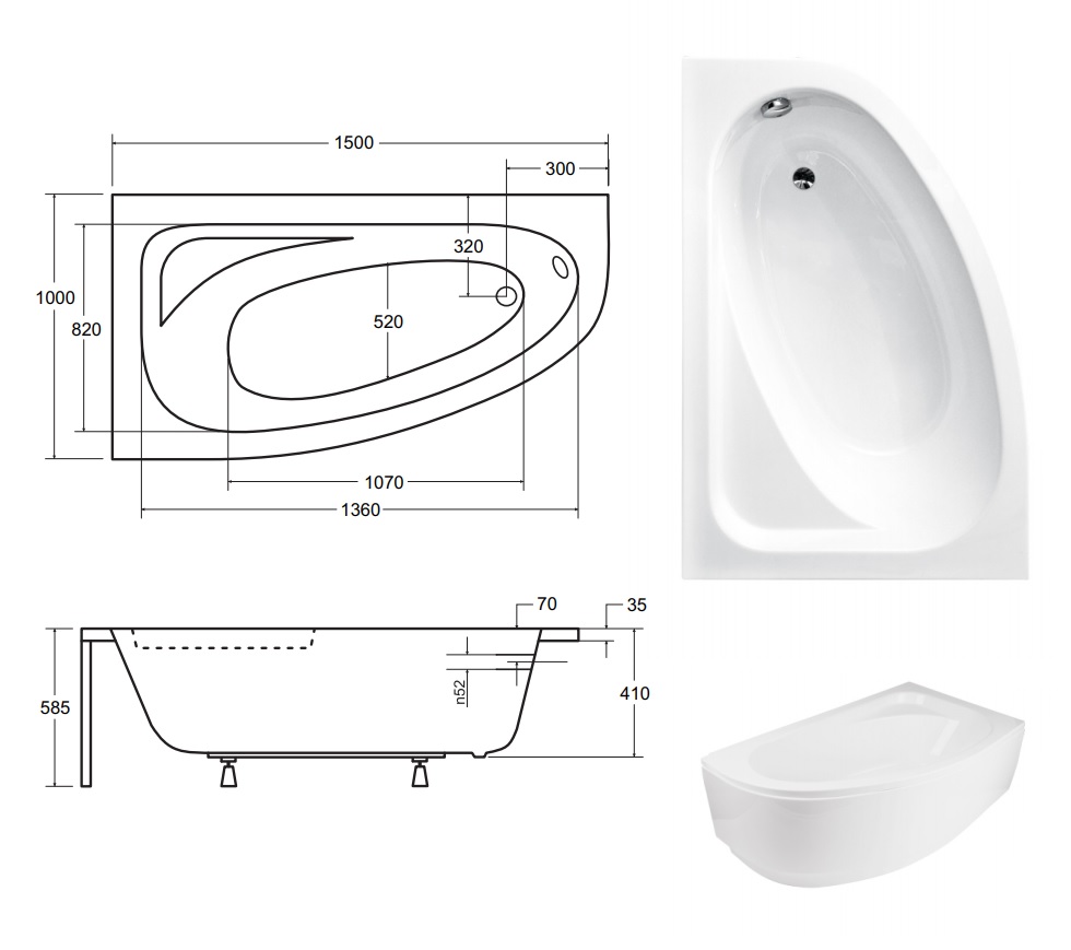 Відгуки про "Ванна акрилова CORNEA 150х100 Ліва (соло) без ніг"