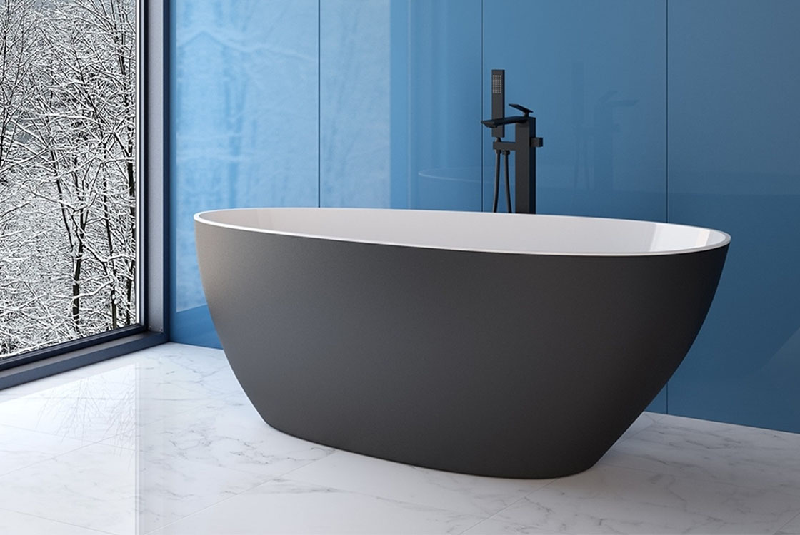 Ванна GOYA ретро виготовлена з мінерального лиття Mineral DuraBe. Зовнішня частина ванни оздоблена в чорному матовому кольорі, внутрішня біла. Комплектується сифоном клік-клак в кольорі хром.