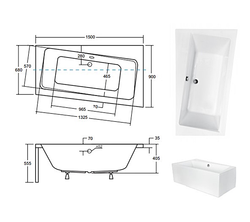 Акрил, товщиною по борту 4-5 мм з потовщенням по дну 6-8 мм, витримує навантаження 300 - 350 кг.Об’єм ванни - 160 кг., вага - 19 кг. Додатково комплектується обудовою, ніжками та сифоном.