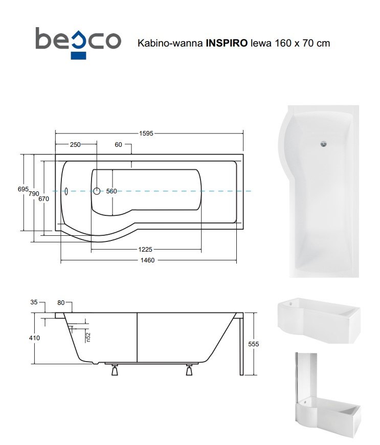 Ванна INSPIRO від польського виробника BESCO асиметричної форми. Об’єм ванни становить 190 л в той час, коли важить вона лише 26 кг. Таких пропорцій польському виробнику вдалося досягти завдяки тому, що виготовлена вона з акрилу- сучасного, екологічно чистого матеріалу. Завдяки акриловій поверхні ванна «INSPIRO» швидко нагрівається та довго зберігає тепло. Доведено, що протягом 30 хвилин вода охолоджується лише на 1 градус. Вона стійка до подряпин та ударів, а також до дії хімічних речовин. Її поверхня ідеально біла та гладка, майже не брудниться та дуже легко миється. При додатковому обладнанні душовою шторкою нестандартна форма дозволяє використовувати ванну "INSPIRO" як душову кабіну. Ванна додатково комплектується ногами і обудовою